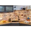 Velký rohový dřez přispívá k vysokému charakteru kuchyně bez omezení funkčnosti.