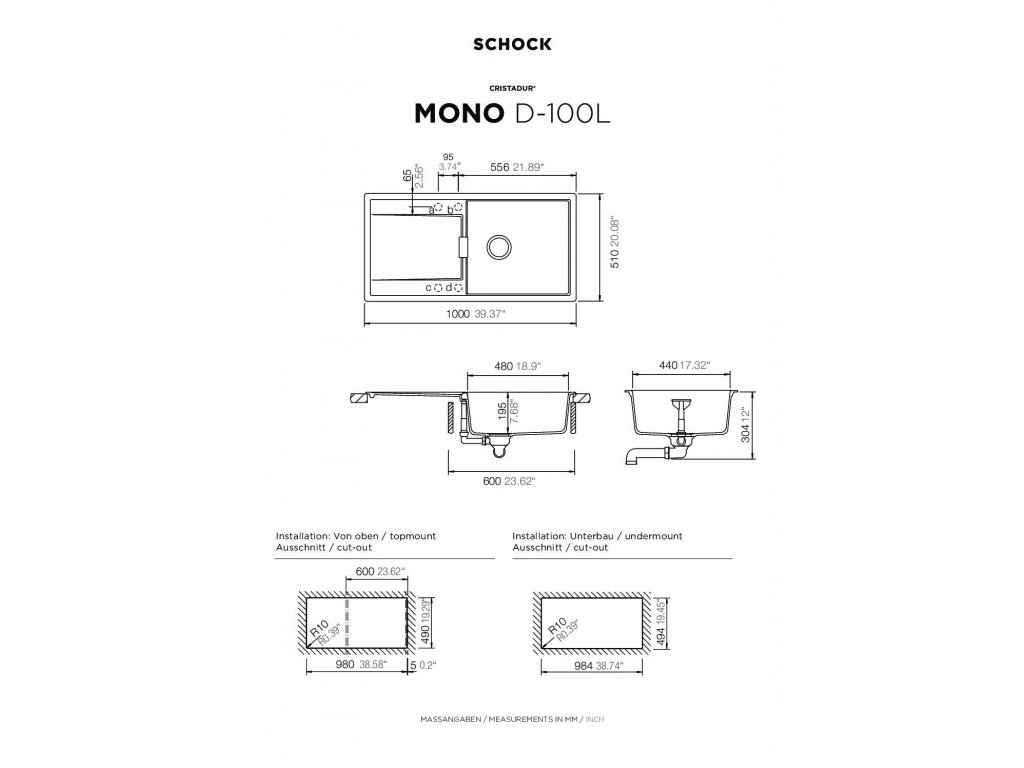 Rozměr dřezu: 1000 x 510 mm