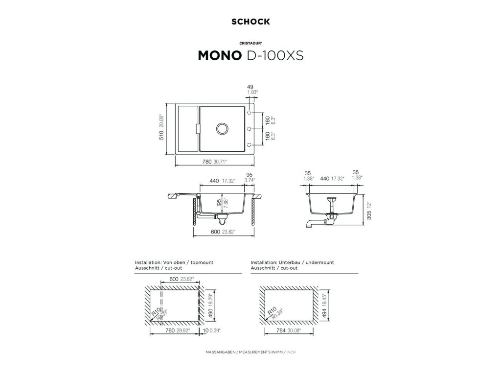 všechny dřezy SCHOCK jsou i modely řady CRISTADUR