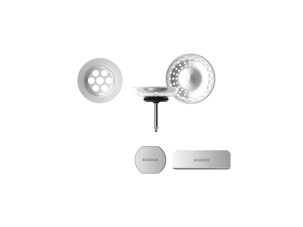 Balení obsahuje výpusť, sítko, knoflík a přepad