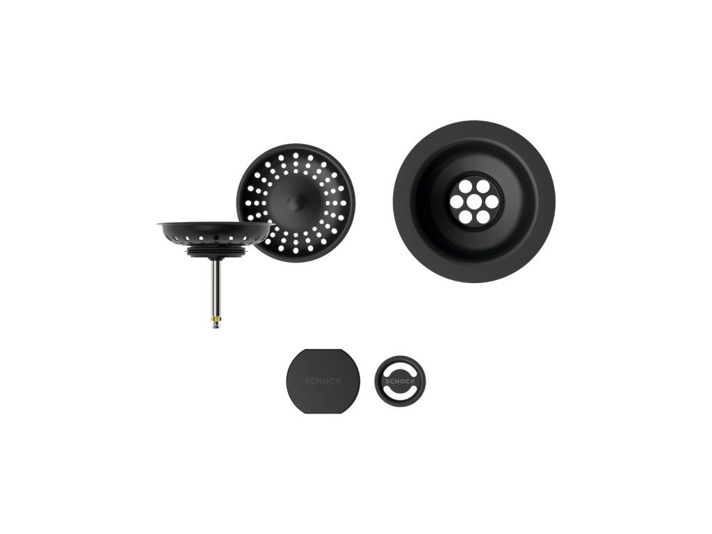 Balení obsahuje výpusť, sítko, knoflík a přepad v nerezu.